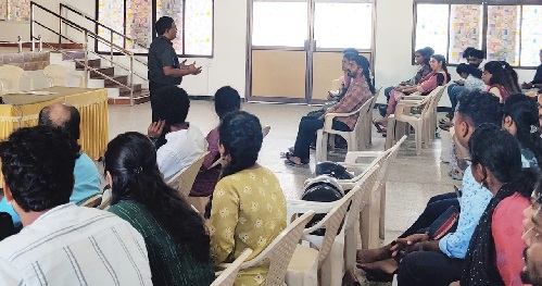 Dr. Magimai Pragasam led an engaging session on `Communication and Married Life` for approximately 150 young couples at the Pastoral Centre. The session focused on enhancing communication skills and strengthening relationships for a successful married life.
