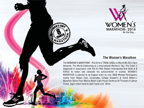 Women`s Marathon is planned to be biggest event by over 5000 women participants mainly from Rotary club,Corporates, College students & Home makers.