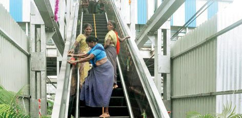 The construction work for installation of automatically operating over bridge escalators at 5 locations in Chennai is nearing completion. They will be opened for public use after the elections.