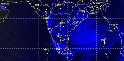 Metrological Department has mentioned that cyclone Hudhud over East Central Bay of Bengal moved west-north westward and lay centred over West Central Bay and adjoining East Central Bay at 17.30 hours today at about 675 km east-southwest of Visakhapatnam.