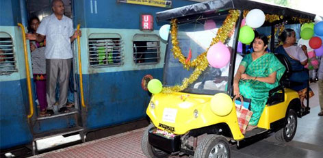 Provision/augmentation of amenities at stations, including those for differently abled passengers is a continuous process. Short term facilities like standard ramp for barrier free entry, earmarking at least two parking lots, non-slippery walk-way from parking lot to building, signages of appropriate visibility, at least one toilet (on the ground floor) & at least one drinking water tap suitable for use by differently-abled persons and �May I help you� Booth, have been planned at all stations beginning with �A1�, �A� and �B� category stations. Long term facilities viz. provision of facility for inter-platform transfer and engraving on edges of platform, are planned after provision of short term facilities. Instructions also exist for provision of wheel chairs at stations. This facility is provided, duly escorted by coolies (on payment) as per present practice. �Battery Operated Vehicles for Disabled and Old Ages Passengers� have also been provided free of cost at some of the major railway stations.