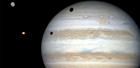 Jupiter�s moon, Io, is a little larger than the Earth�s moon.Around 10.27 PM, the third shadow, that of Europa, will join these 2 shadows. These 3 shadows can be seen together near the moon until 10.52 PM,