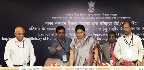 Smt. Smriti Irani, Union Human Resource Development Minister launched the National Web Portal at New Delhi for promotion of National Apprenticeship Scheme for Graduates, Diploma holders and 10+2 pass-outs vocational certificate holders. The Union Minister also released a Logo and a Slogan Sashakt Yuva, Samarth Bharat for the National Web Portal.