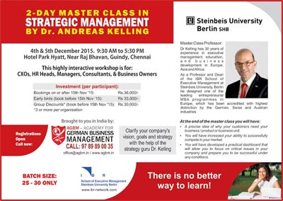Master Class in Strategic Management by Dr Andreas Kelling of IBR International Institute of Business Relations, Steinbeis University, Berlin.