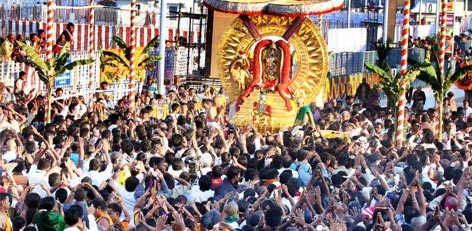 As a tradition, during this festival, the main deity or Lord Venkateswara is taken on procession in the temple corridors/streets in 10 different carriages for 10 days, each day in 10 different carriage.