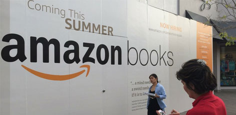A second brick and mortar store from Amazon will open this summer in San Diego. The store will come up in the University Town Centre Mall. A sign outside the construction area read, Coming this summer - Amazon books.