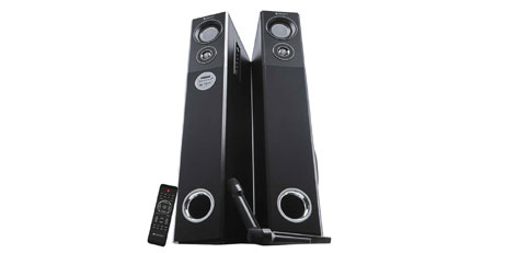 The speakers get powered with 70 watts RMS sound output. There is also a wireless mic support along with Bluetooth option for wireless music streaming. There is also AUX support for connecting the devices like DVD player, computer, TV, etc.