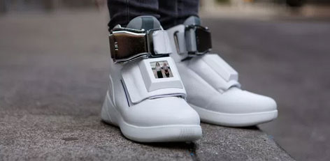 The shoe is handcrafted in Milan, Italy. It is made of white leather. The shoes get powered by rechargeable battery that can withstand for up to 3 hours.