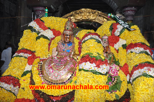 The devotees, who thronged the Arunachaleswara temple, chanted "Annamalaiyarukku Arogara," as the `Aganda Deepam` was lit in the temple. Immediately after the processional deity of Ardanaareeswara was taken to the quadrangle outside the sanctum sanctorum at 6 PM.
