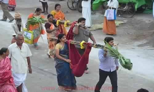 Devotees with Karumbu Thottil at Arulmigu Om Arunachaleswarar Thirukovil, Tiruvannamalai.