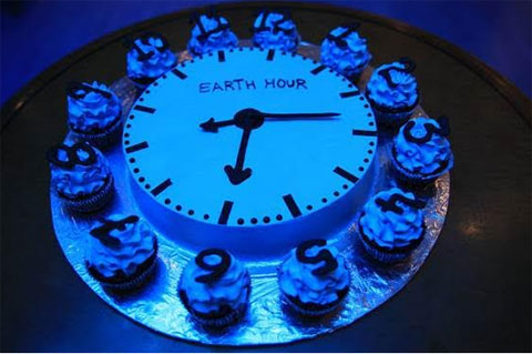 As a symbolic representation, a special cake in a shape of analogue clock was made denoting the Earth Hour and the event ended by lighting up candles forming the phrase We Love Earth. Here is the event photos.