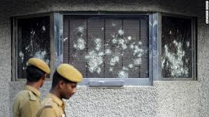 Tamil Nadu Muslim Munnetra Kazhagam (TMMK) damaged the window panes of the inquiry counter and three police booths in front of the heavily-fortified consulate on Anna Salai. Two security guards were injured in the attack.