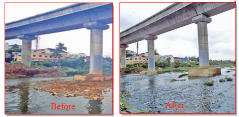 The report had says that the mud and other construction debris generated during the ongoing construction of Metro Rail bridge over Adyar river was being dumped into it thereby posing a risk of water flooding the adjoining areas during heavy rains.