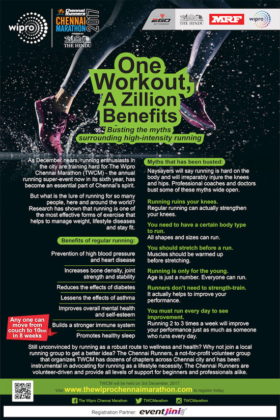 As December nears, running enthusiasts in the city are training hard for The Wipro Chennai Marathon (TWCM) - the annual running super-event now in its 6th year, has become an essential part of Chennai`s spirit.