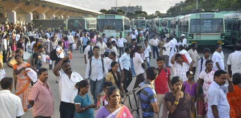Crowds are expected to be swelling in the Koyambedu bus stand and the omnibus terminus this evening.