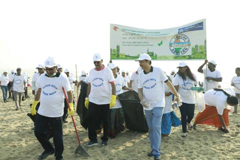 A large number of officials from the bank participated in the drive and cleaned the stretches of Eliots beach, Besant Nagar.