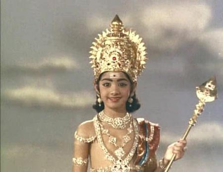 Immediately, Sridevi was called to the studios and make-up tests were conducted. On successful trial, Sridevi was immediately enrolled to act in the role of Young Lord Muruga in the film �Thunaivan�,