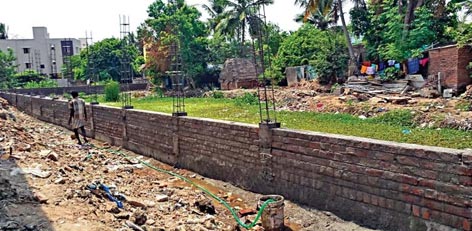 An official belonging to the corporation of Chennai shared his views and said there were many complaints from the residents here regarding the attempts to encroach the pond. Hence compound wall is being built now.