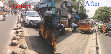 With reference to the facebook complaint made by Tr. Ananthakrishnan Gopalakrishnan, it is informed that the center median dividers made of cement blocks on Arcot Road from Periyar Road to Metro Water Station was re-arranged and necessary action has been taken to construct the center median divider at that place.
