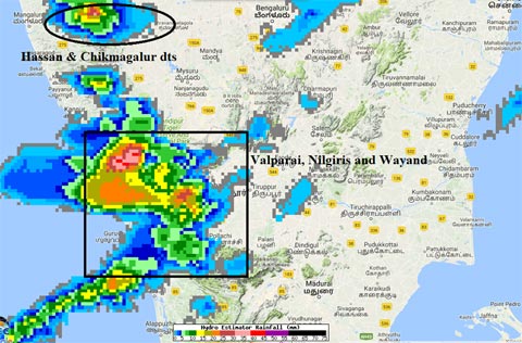 Massive Rains in Valparai, Nilgiris and also Cauvery Catchment areas in Kodagu, Hassan and Chikmagalur in Karnataka and Cauvery Catchment in Wayanad.