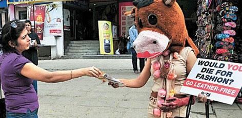 �use synthetic leather instead of hurting animals� said peta outside the venue of the 18th international leather goods fair that is taking place in t. nagar.