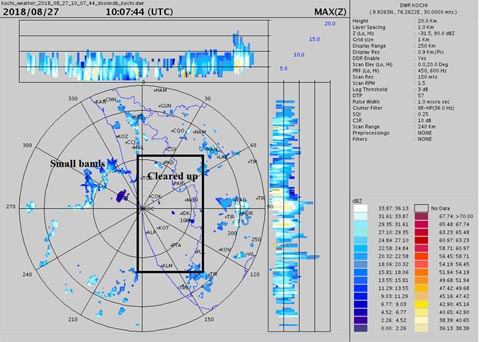 Rains happened in Kerala today after nearly 8 days but as expected fizzled (out see the 2nd photo of radar image). There is no there threat of any flooding rains in Kerala in the coming days. There maybe some rains tomorrow too but there is absolutely nothing to fear off.