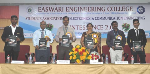 Easwari Engineering College,Ramapuram, Chennai, Department of ECE, has organized a National Level Technical Symposium, �Quintessence 2018 2.0�. The Chief Guest for the programme was Ms. S. Hemalatha, Operational Head (R&D), Inesh Smart Energy Pvt. Ltd. The Chief Guest delivered the inaugural address and insisted on how important challenges in life are and how necessary they are to enjoy success in one�s life. The department�s annual magazine- �ECHOES� was released and the first copy was presented to the Chief Guest.