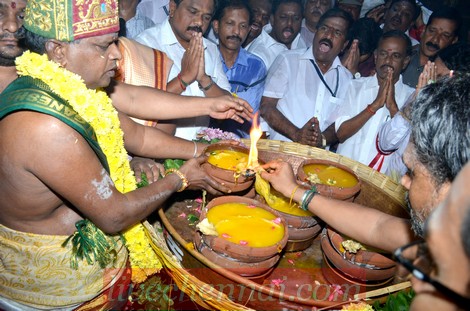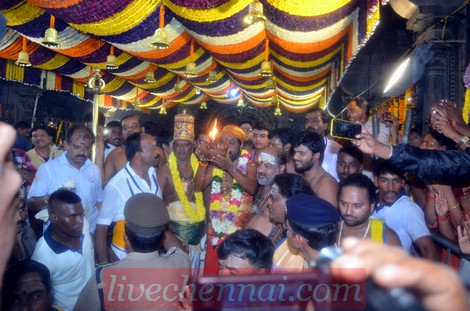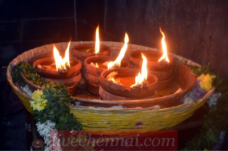 Lamps were lit in front of the deities of Gods in the sanctum sanctums in sequence of the deities of Goddess Amman, Sambandha Vinayakar, 2nd corridor Lord Natarajar, Panchamuthys, Vinayakar, Ardhanareeswarar, Vengopal Swamy, Murugar, Gajalakshmi, Arumuganar, and then Arunagiri Yodeswarar, Paeasakthi Amman, Navagrahas, Chithragupthar, Kodimaram (holy flag tree), Hundi Subramanyar, Adhikara Nandhi, Nalvar, Chandikeswarar, and finally, Sornabhairavar and thus, the holy lighting of �Bharani Deepam� was completed.