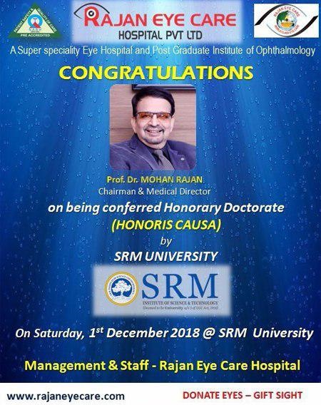 Prof. Dr. Mohan Rajan, Chairman & Medical director, Rajan eye care hospital being conferred honorary doctorate (Honoris CAUSA) by SRM university on Saturday, 1st December 2018 at SRM university.