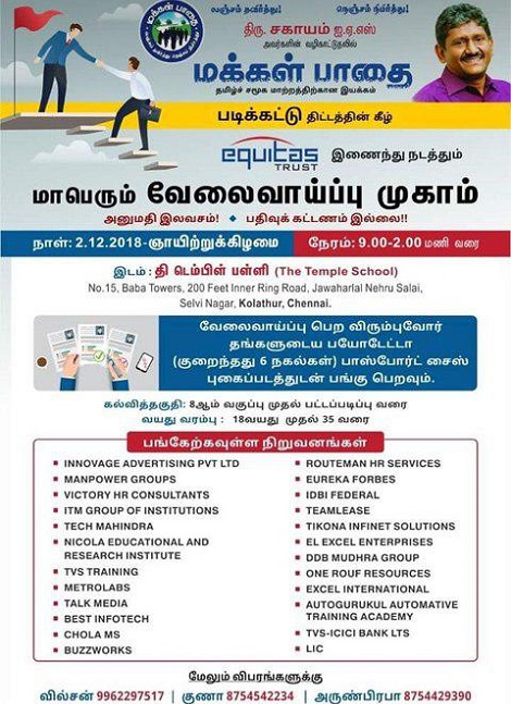 Makkal Pathai join hands with equitas trust to conduct Mega Job fair in Chennai on Sunday, 2nd December 2018.