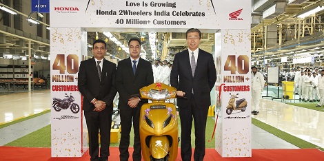 Sharing his perspective on the rollout of the milestone 40th Million two-wheeler, Mr. Minoru Kato, President & CEO - Honda Motorcycle & Scooter India Pvt. Ltd. said, �We are honoured by the love and trust that 40 million customers have bestowed on brand Honda in such a short time. Since the very start, Honda is led by a challenging spirit bringing Joy to millions of customers with high quality innovative products.�