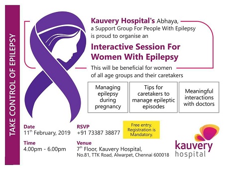 Kauvery hospital`s Abhaya, a support group for people with epilepsy is proud to organise an Interactive session for women with epilepsy on 11th February 2019. This will be beneficial for women of all age groups & their caretakers.