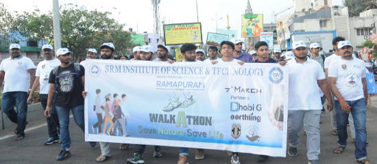 Nearly 1000 students of Computer science and other department from SRM Rampuram campus participants took part in the noble initiative of ` Save Nature � Save Life Walkathon` throwing light on the existing threats to the nature. The walkathon of 3 km started from Eliots beach and went through Rajaji Bhavan, Annai Vailankanni Shrine, Murugan idli shop and ended at starting point of Eliots beach.