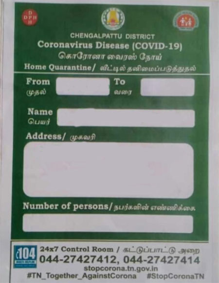 As a part of the step to make the public aware of and also for easy identification, the corporation has printed sticker form to be pasted on the quarantined houses!