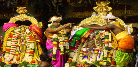 The Divine Marriage of Goddess Meenakshi Amman with Lord Sundareswarar will be performed from 8.30 AM to 9.30 AM.