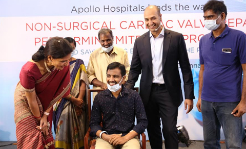 Apollo Hospitals, Asia`s foremost and most trusted healthcare group, today announced a successful MitraClip implant on a 41-year-old male farmer who had waited for over three months in different hospitals for a heart transplant. The patient was back on his feet within a few days after the procedure, and might not even need a heart transplant.