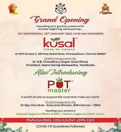 Happy to Announce, we are opening our New Outlet at Thoraipakkam and launch of our New Brand Potmaster
