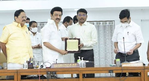 Tamil Nadu Chief Minister M. K. Stalin gave the Best Performance Award for 2021 for successful completion of various welfare projects including Rural Development, the projects undertaken for the local area development, etc.