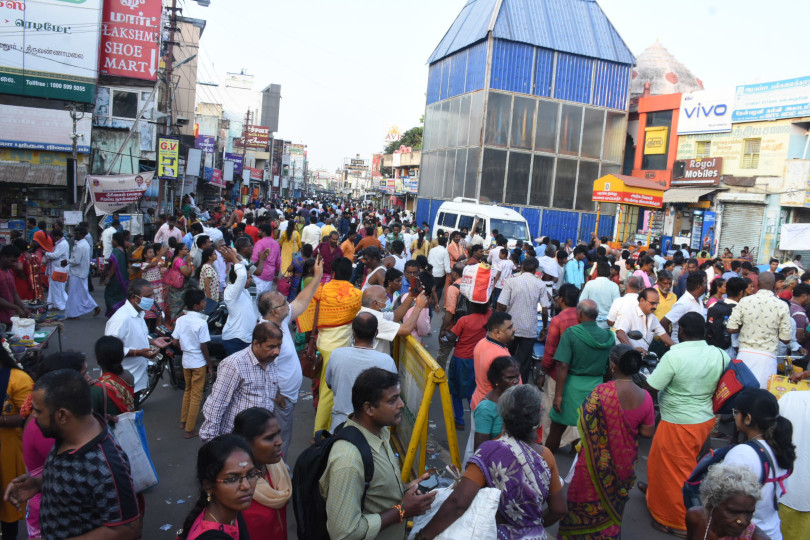 Devotees gather at the temple today on the day of Thiruvannamalai Chitra Pournami!