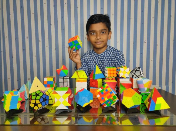 3rd Grader S Bhargav from Orchids International School solves 30 Rubik Cubes under 14 mins