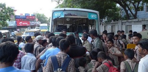 There was a rivalry among the students in an MTC bus between Broadway and T nagar. During the battle, one girl got injured and two MTC buses were badly damaged. Dhanapal, the bus conductor stated that the incident happened when the bus reached Shanthi theatre bus stop by around 2.20 pm. A students group kept making noise and this group was attacked by another group of 25 students who entered the bus.