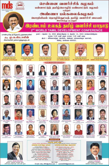 The conference will focus on research related to scientific, legal, medical, and AI applications of Tamil. Awards such as the Valartamil Arignar Award and the Mamani Award will be presented to distinguished Tamil scholars. VRS Sampath, Chairman of the Chennai Development Association, provided the details.
