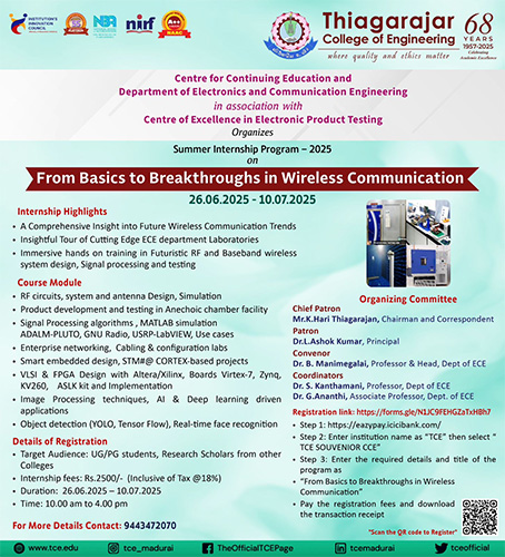 Summer Internship 2025 in Wireless Communication at TCE Madurai