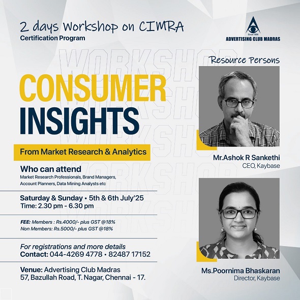 Venue: Advertising Club Madras 57, Bazullah Road, T. Nagar, Chennai - 17.