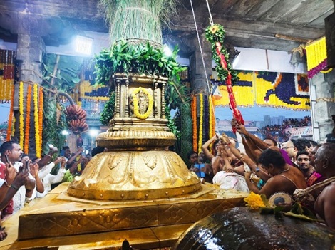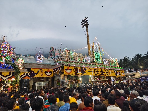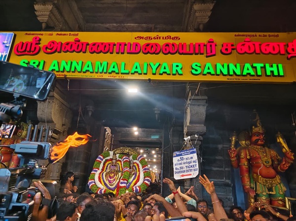 The grand Thirukarthigai Deepam festival at the Annamalaiyar Temple in Tiruvannamalai commenced today (24.11.2025) with the traditional hoisting of the holy flag on the 64-foot-tall golden flag mast, marking the auspicious beginning of the celebrations.