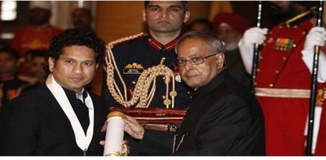 President Pranab Mukherjee present the honour. The vice president, Mrs. Anjali Tendulkar, and Ms. Sara Tendulkar, Union Ministers, and other dignitaries attended the function.