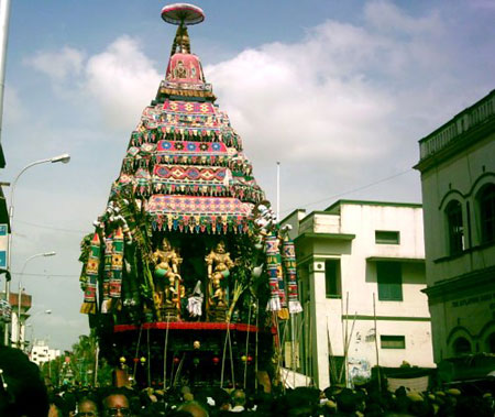 The Annual 10 days Panguni great festival [Panguni Perviza or Aruvathu Muvar Viza] is a big draw with lakhs of people participating. The festival indicates the onset of summer. It is also project as tourist a festival. The festival starts at 7.30 hours on March 20, 2010, Saturday with traditional hoisting of the temple flag. The car Festival, a part of the great festival will happen on 26th March,10, when the Temple car with the presiding deity and the Amman  seated in the car, will be taken around through the Mada Streets. Arupathumoovar or 63 Nayanmars � the great devotees of Lord Siva will be taken around in  a procession on 27th March, 2010.