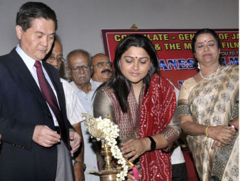The four-day festival is underway in Chennai is organised by the Consulate-General of Japan, Chennai, and Madras Film Society. Some of the films are based on best-selling novels. Actor Kushboo lit the kuthuveelakku at the Japanese film festival in Chennai on Tuesday. Consul General of Japan Kazuo Minagawa and State Information Commissioner Sarada Nambi Arooran participated in the event.