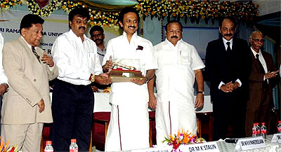 Health Minister M.R.K. Panneerselvam and SRU Chancellor V.R.Venkatachalam felicitated the senior cardiac care professionals who were present on the occasion.