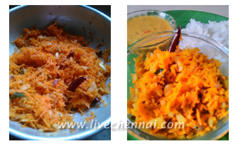 If the carrot doesn�t have enough sweet taste than usual, we can very well add a spoon of sugar once the veggies got cooked well.